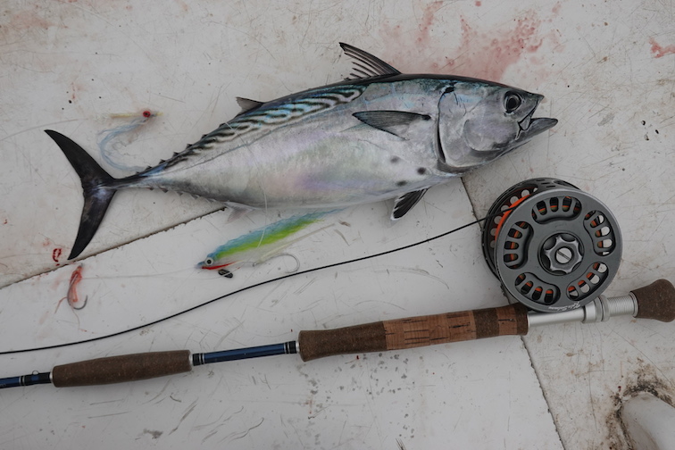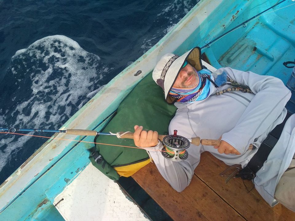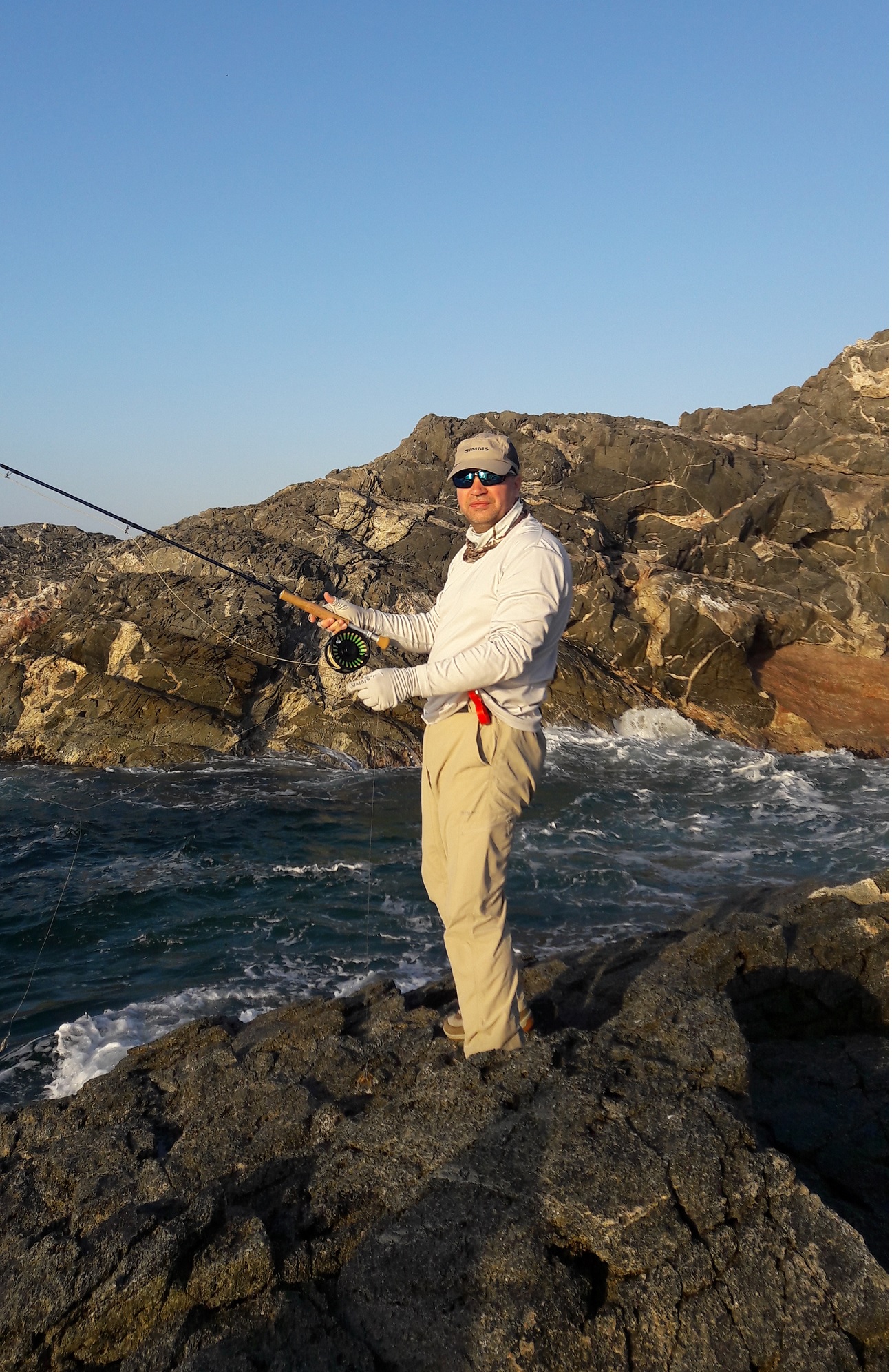 Если рассматривать снасти, то практически все время я ловил на удочку от компании Kola Salmon OCEAN # 9-10 9'0" и тропическим шнуром, подаренный нашей команде для его тестирования в боевых условиях так же от компании Kola Salmon в плавающим и интермедиальном варианте - интермед рекомендуется на морской рыбалке для быстрой доставки тяжелой мухи на дно моря: