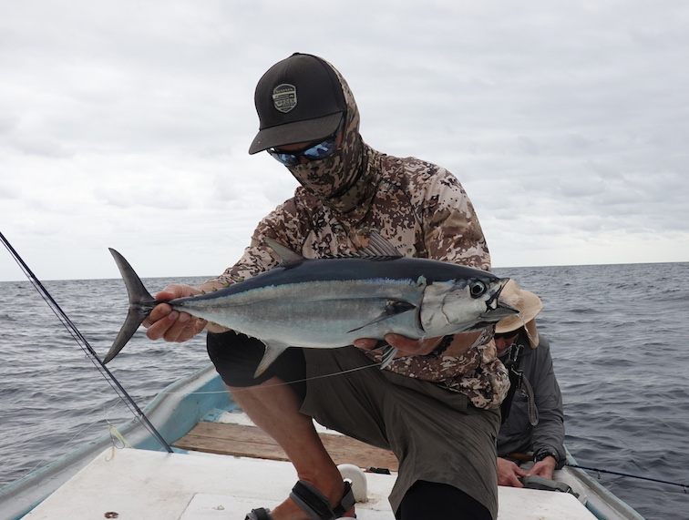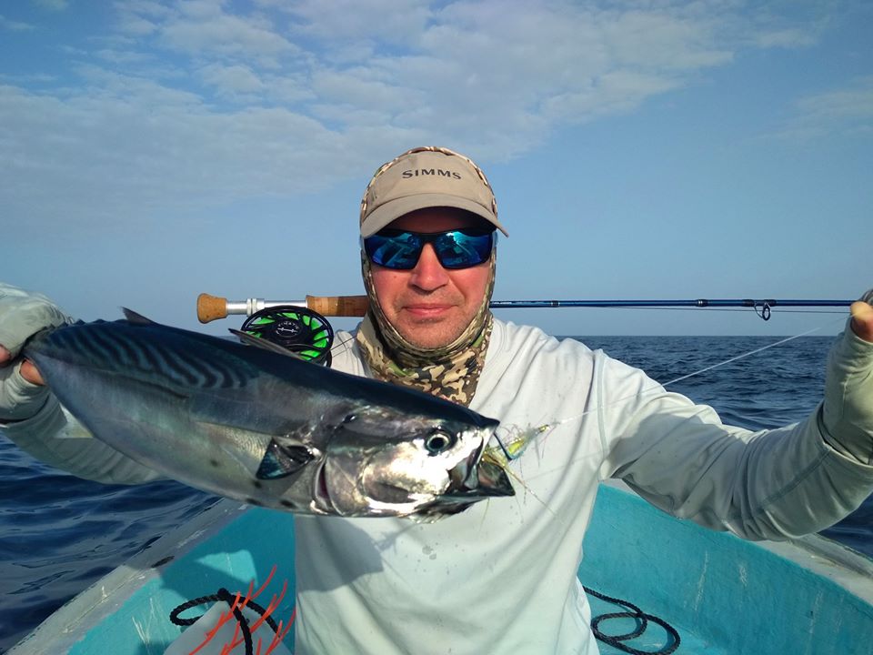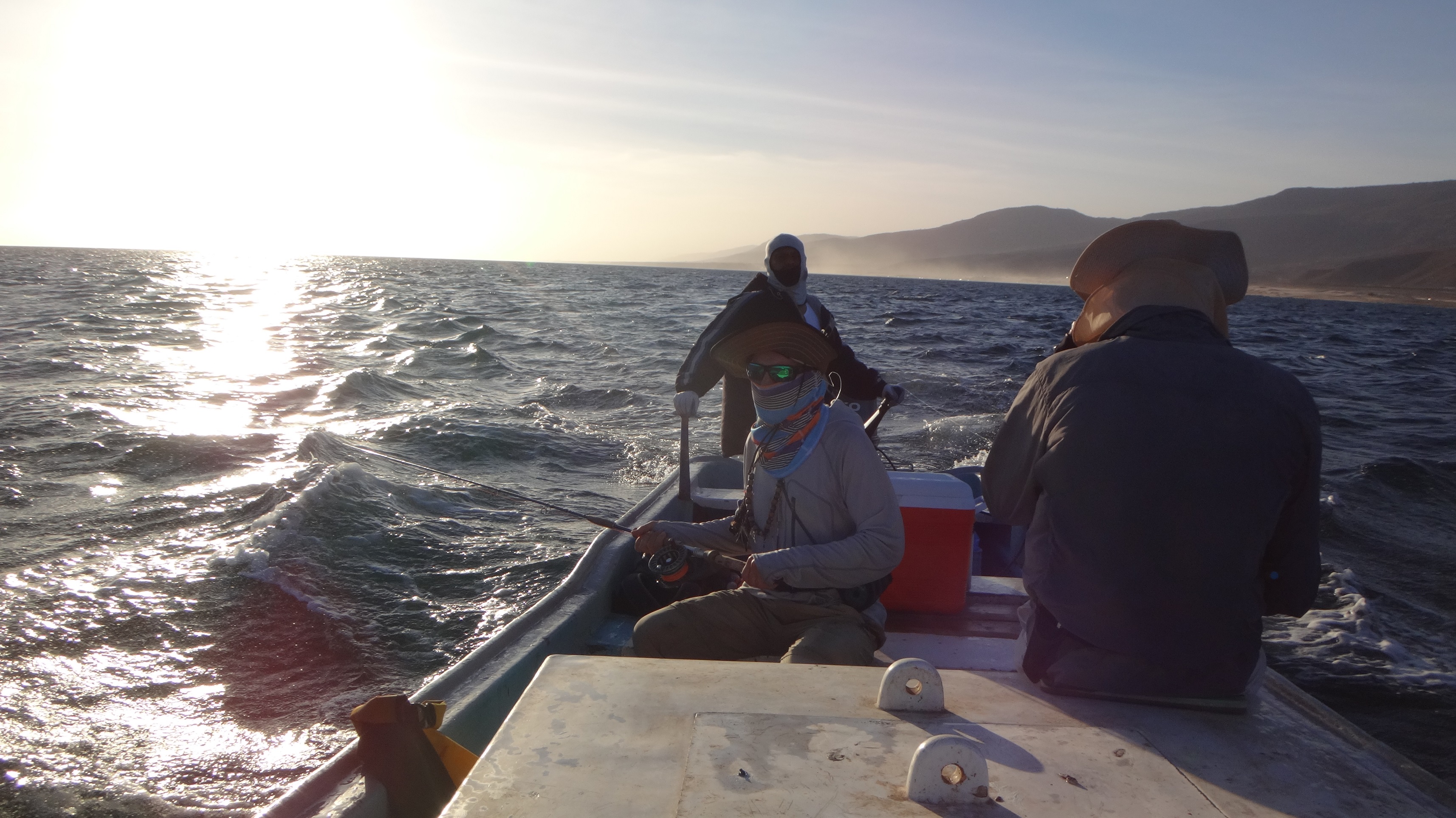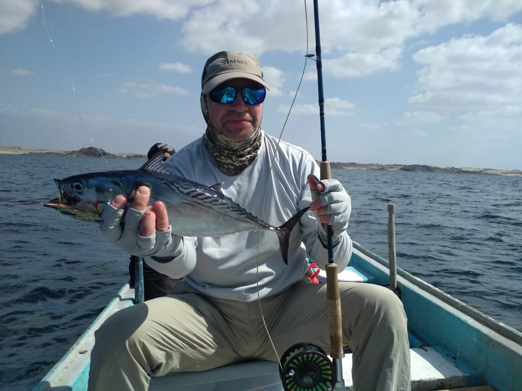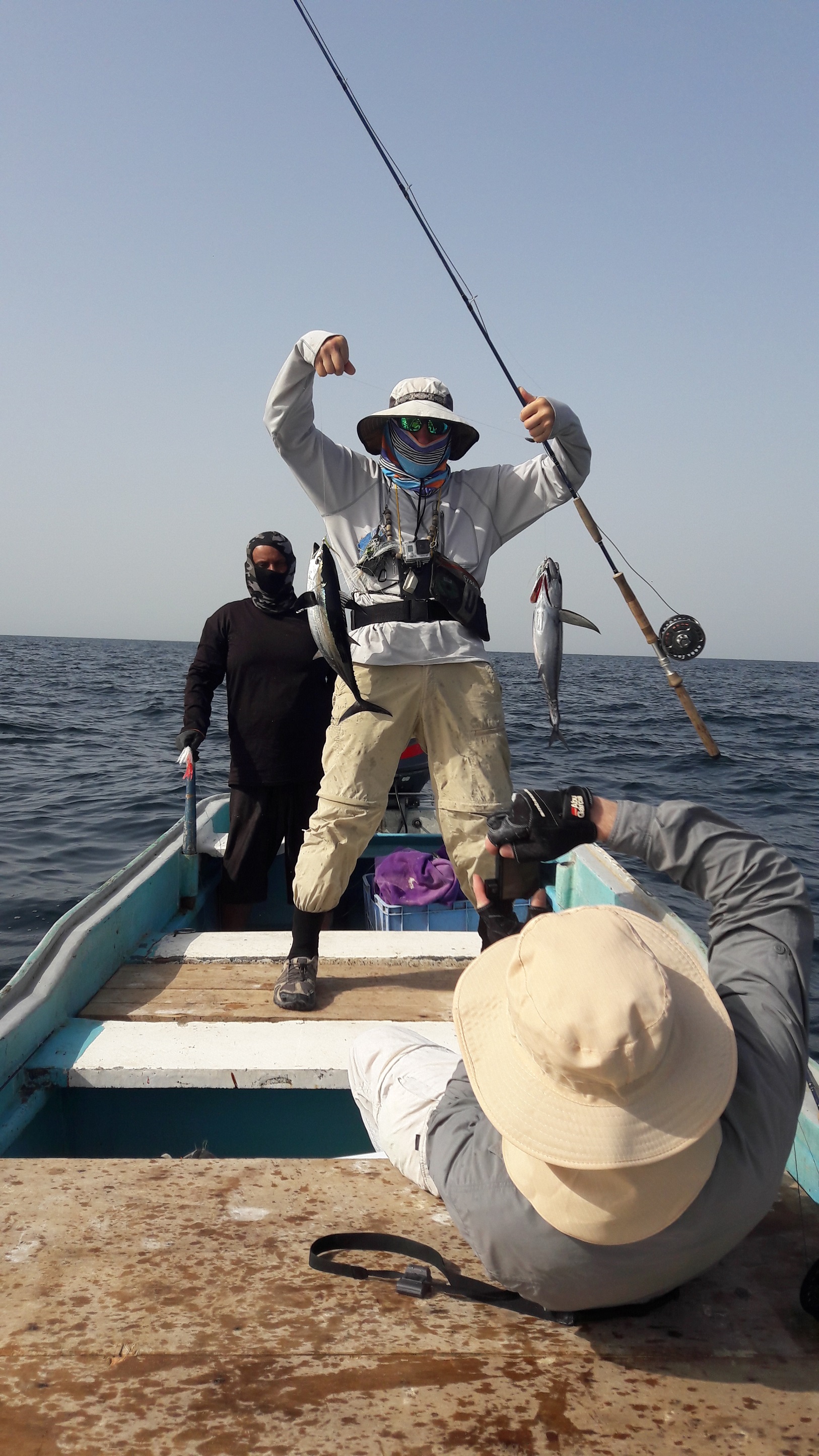 Точка отправления на морскую рыбалку у нас был небольшой рыбацкий городок Мирбат, который расположен в 100 км от Салалы, лодку арендовали на 5 часов и этого было вполне достаточно для рыбалки. Рыбалака с лодки была более уловистой и намного интересней! Быстрые тунцы в основном ловились на троллинг, наш гид Мохаммед выбирал точную скорость движения судна и правильное направления тогда тунцы начинали хватать наши стримеры. Ловля нахлыстовой снастью классическим способом при стрипах стримера очень редко приносило результат, скорость проводки была для тунца слишком медленной, хотя старались делать проводку быстро, но при этом очень быстро наступала усталость. Ловили в основном в "слепую" и тонущими шнурами в толще воды. Иногда попадались тунцы классическим методом, но очень немного. Кроме тунцов попадались другие виды рыб, каранксы, ставриды, дораб (волкосельдь) и т.д.