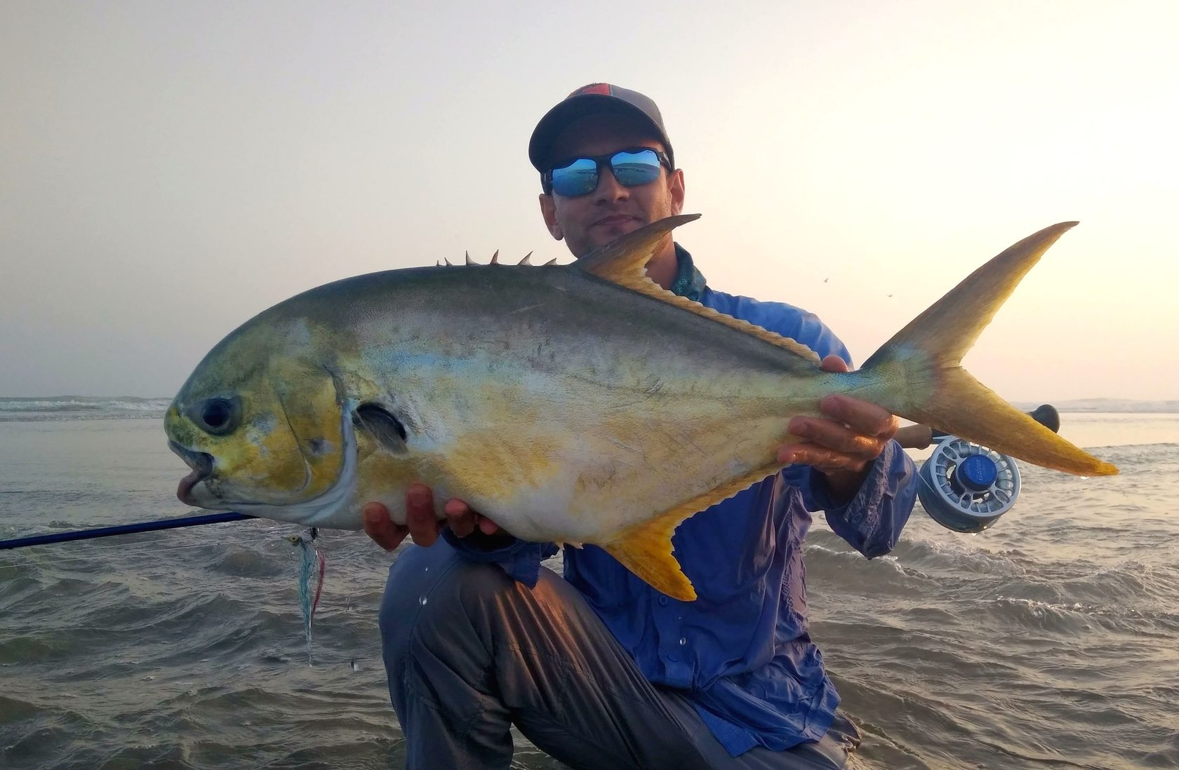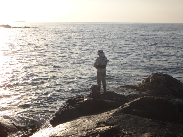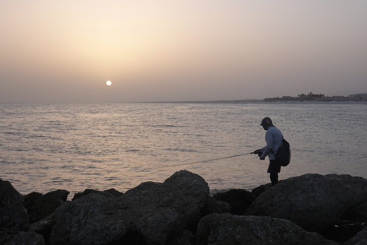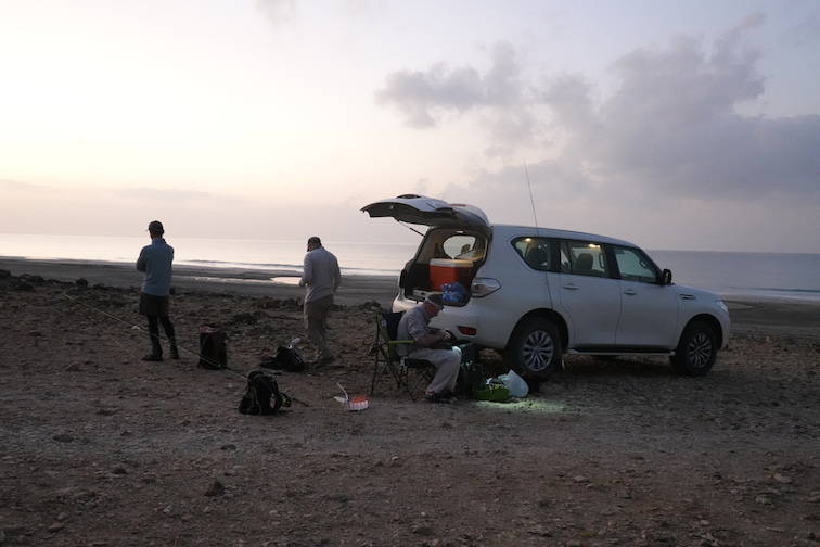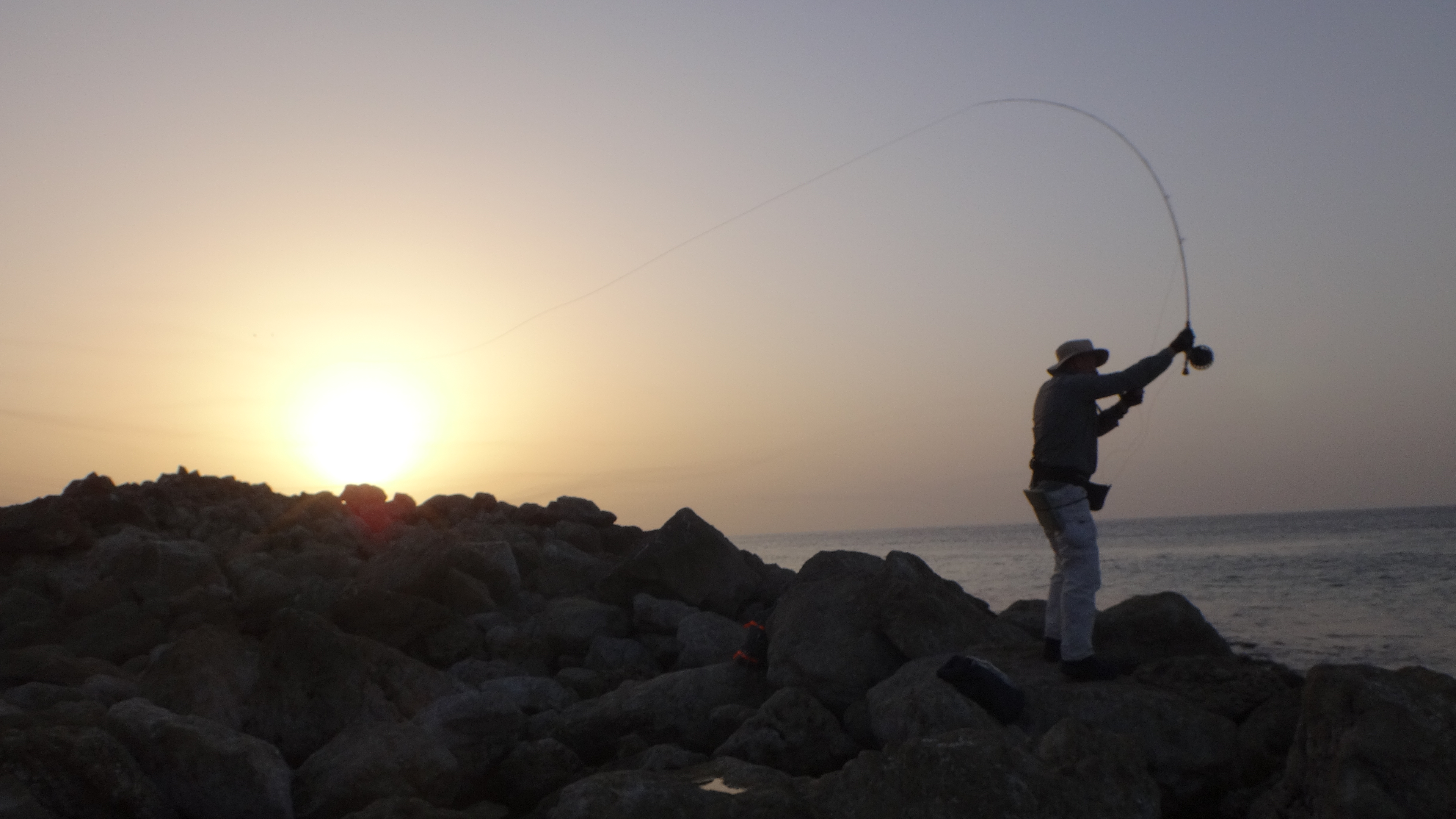 Самые удачные периоды рыбалки в Омане на пермита считается март и октябрь. Рыбалку мы начинали рано утром (подъем в 4 утра), так как максимальной морской прилив в эти дни начинался ориентировочно 6 утра. Наша основная цель береговой рыбалки был именно африканский пермит, ловили его и с песчаного пляжа и со скал, но рыбалка есть рыбалка и в течении всей поездки нам его поймать так и не удалось. Африканский пермит - стайная рыба и кормиться он тоже стаями, но видимо численность его была очень мала на тот момент. В начале рыбалки мы часто видели его кормящим возле прибрежных камней, но на первых забросах нам поймать его не удавалось. и он увидев нас быстро уходил в море, и больше в этот день стаи этих красивых рыб к берегу не подходили. Далее мы кидали наши приманки в воду, "в слепую", но это было безрезультативно.