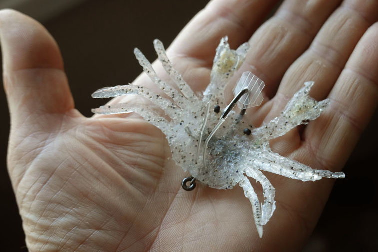 Михаилом было навязано огромное количество различных крабов весом от 3 гр. до 10 гр., в том числе и теста селиконовые приманки.
